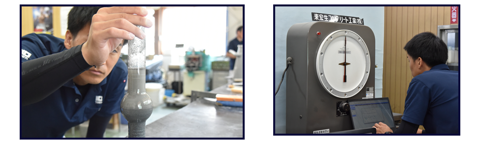 これらの試験を常日頃から行うことで、施工現場の要求に応じた品質を確保し、さらに品質の向上を図ることができます。
