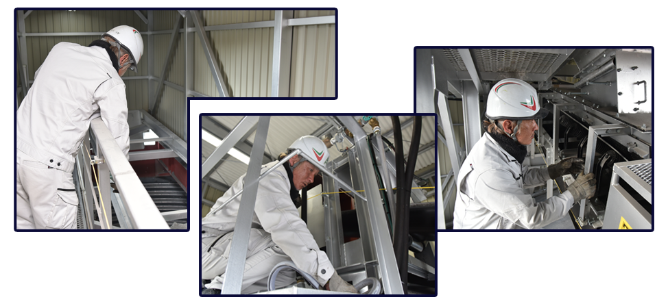 様々な材料を保管するストックヤードや運搬用のベルトコンベアーなどの工場設備の点検を行います。