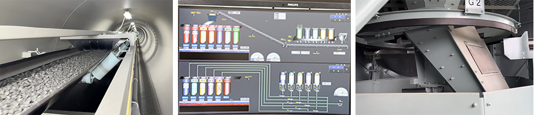 パイプ内のベルトコンベアを用いて骨材を送り出します。