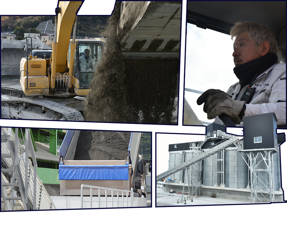 製造時の余剰コンクリートを再び活かすために再生材への製造も担当し、出荷・製造と連携し、陰ながら現場を支える責任ある仕事です。